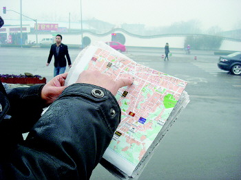 28日下午,天下著小雨,市民韓建平拿著地圖站在陽光新路和建寧路路口,指著陽光新路西側圍墻內的一片拆得凌亂不堪的紅磚老房子慨嘆:經十一路西延提了將近10年了,相關部門也承諾了很多次,但是到現在這里還是一片廢墟,盼了一年又一年,到底何時動工啊?