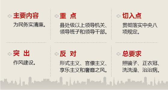 治治病,主要是堅持懲前毖后、治病救人方針,區別情況、對癥下藥,對作風方面存在問題的黨員、干部進行教育提醒,對問題嚴重的進行查處,對不正之風和突出問題進行專項治理。