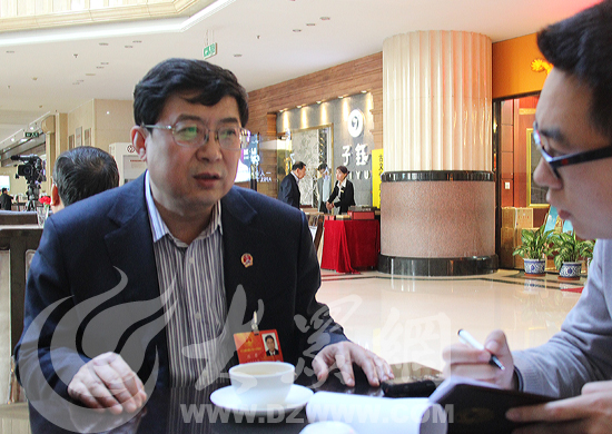 全國人大代表、泰安市政協副主席、泰安市中心醫院院長劉君接受大眾網記者采訪。(特派記者 赫洋 攝)
