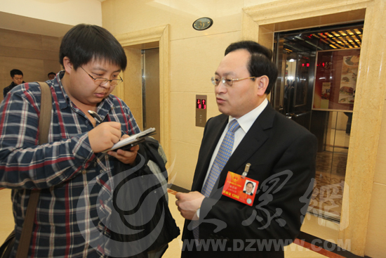 全國人大代表、德州市代市長楊宜新接受大眾網特派記者采訪。(特派記者 盛堃 攝)