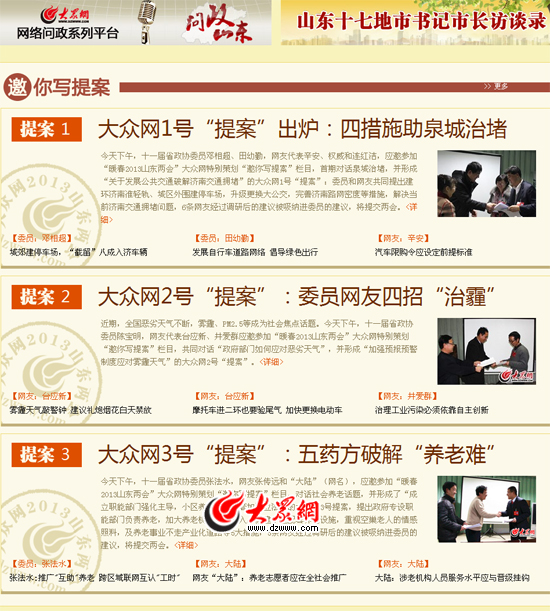 2013年省“兩會”,大眾網特別策劃推出網友互動欄目——“邀你寫提案”。