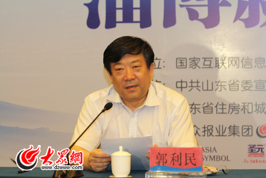 淄博市委常委、宣傳部長(zhǎng)郭利民在發(fā)布會(huì)上介紹淄博市有關(guān)情況。大眾網(wǎng)記者 馬鑫 攝
