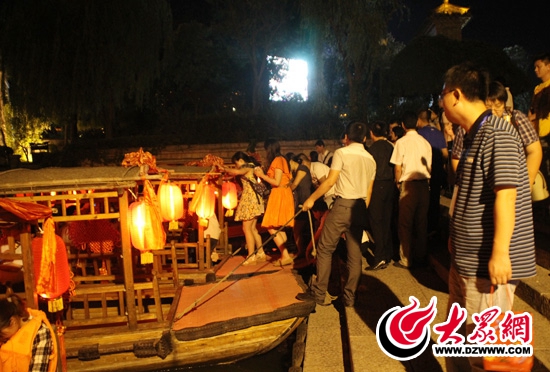 今天晚上,西線采訪團(tuán)來到臺兒莊古城,準(zhǔn)備登船夜游。 記者 郭豪攝