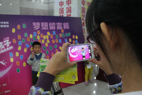 13日晚6點(diǎn)半,在日照市會(huì)展中心前,大批觀眾已經(jīng)準(zhǔn)備檢票。廣場前,小孩子們興奮和期待的喊叫聲,讓這個(gè)在秋天里略微安靜的小城,顯得熱鬧起來。晚上7點(diǎn),離演出正式開場僅有半個(gè)小時(shí),此時(shí)的演出廳內(nèi)已經(jīng)座無虛席。比起門口的夢想墻來說,似乎接下來的話劇更能吸引孩子們。