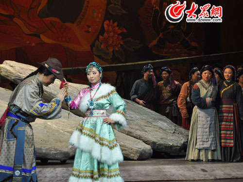 舞臺上,由著名女高音歌唱家、國家一級演員殷秀梅飾演的丹珠,用自己清爽的歌聲,將一個雖然生在貴人家庭,卻不失藏族人豪邁本色的藏族姑娘,刻畫得栩栩如生。而她那圓潤渾厚,將西洋唱法和民族唱法完美結(jié)合的歌聲,更是高亢流暢,行腔自如,令現(xiàn)場的觀眾如癡如醉。