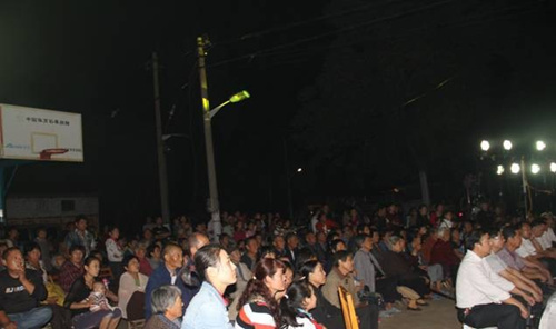9月13日晚,常莊鎮孟嶺村鑼鼓喧天、歡聲笑語,村民群眾正在觀看精彩的文藝節目,這是山東棗莊薛城區委宣傳部、區文廣新局聯合開展的歡慶“十藝節”“雙包雙聯”送戲下鄉演出活動。