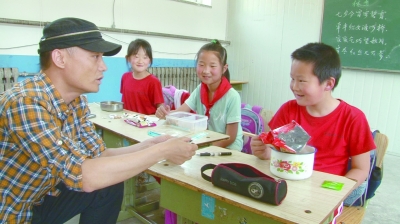 圖二:導演王炳燃對鄉村孩子喜歡吃什么很感興趣,正跟孩子們聊得熱火朝天。