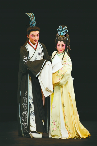這臺戲是由兩位“80后”擔綱的,蔡文姬的扮演者萬曉慧和王銘都是不滿30歲的新人,然而他們的表演卻可圈可點。萬曉慧扮相俊美、嗓音亮徹,多處無伴奏的吟唱也游刃有余,因人物所需還在“張派”青衣的基礎上加入了刀馬旦的風姿。扮演董祀的王銘是“葉派”小生,他的形象、嗓音、表演俱佳,尤其是嗓音聽來很是順暢,在小生中不可多得。