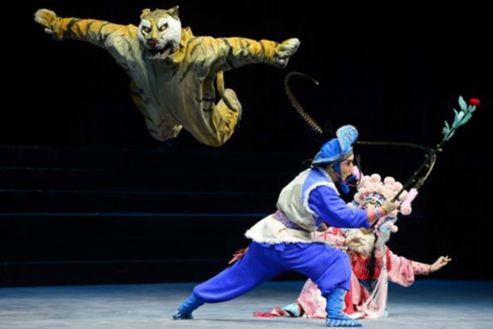 擔任《飛虎將軍》導(dǎo)演和藝術(shù)總監(jiān)的翁國生表示,《飛虎將軍》不僅集合了現(xiàn)今戲曲界的精英,而且還開創(chuàng)了浙京武戲的新紀元——前半場玩體力,累身;后半場武戲文唱,累心,“《飛虎將軍》的人物性格卻很復(fù)雜,就像莎士比亞的《麥克白》一樣,內(nèi)心戲占了很大比重。”