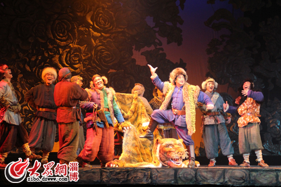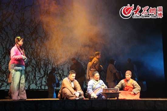 該劇以濃郁的黑土氣息和多變的藝術表現手法,加上演員李雪飛等人的精彩演繹,贏得了在場近千名淄博觀眾的滿堂喝彩。7時30分,龍江劇《鮮兒》正式開演,在悲壯的背景音樂聲中,一群衣衫襤褸的人們相扶相攜,邁著緩慢而堅定的步伐出現的舞臺中央。