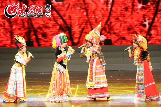 大眾網(wǎng)記者在現(xiàn)場看到,來自于廣西壯族自治區(qū)選送的瑤族民歌《瑤族盤古歌》,侗族民歌《侗部離酸》,四川省選送的藏族民歌《香巴拉》,湖南省選送的苗族民歌《山泉》等描述少數(shù)民族風貌的歌曲給現(xiàn)場帶來了不一樣的視覺沖擊,演員們身著華麗服飾在舞臺背景的配合下,用獨創(chuàng)的動作和聲音展示了與眾不同的音樂魅力。