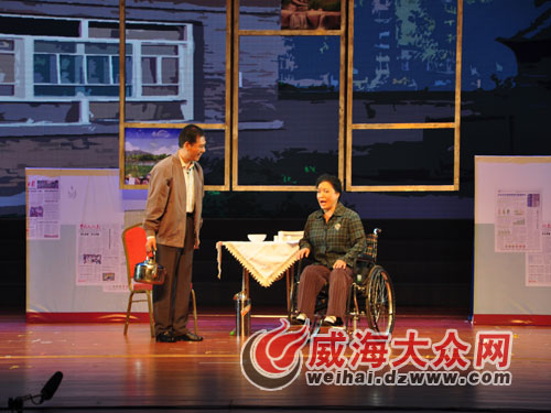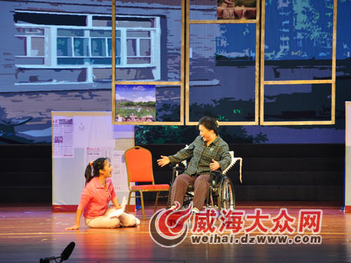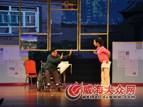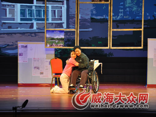 10月21日晚上7時(shí)30分,第十屆中國(guó)藝術(shù)節(jié)“群星獎(jiǎng)”戲劇門(mén)類決賽第二場(chǎng)比賽在威海國(guó)際會(huì)議中心劇場(chǎng)進(jìn)行。來(lái)自山西臨汾市群眾藝術(shù)館的眉戶小戲《帶著媽媽上大學(xué)》讓現(xiàn)場(chǎng)觀眾熱淚盈眶。