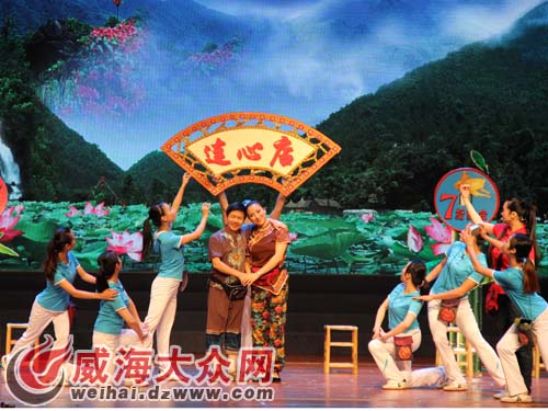 大眾網(wǎng)威海10月24日訊 (見習(xí)記者 黃琦) 10月24日下午,第十屆中國藝術(shù)節(jié)“群星獎”戲劇門類決賽第六場的比賽以一場客家山歌劇開場,在大學(xué)生村官的幫助下,賣五香雞的老板和賣六味鴨的老板糾結(jié)了幾十年終結(jié)姻緣。精彩的演出和內(nèi)容打動了現(xiàn)場觀眾,響亮的叫好聲與鼓掌聲為下午的比賽開了個好頭兒。