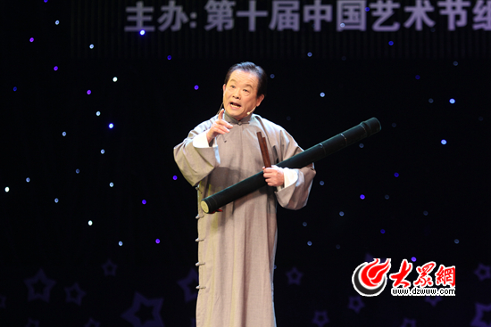 在整場演出中,由山東省濟南市群眾藝術館群星藝術團帶來山東琴書《親家親》可謂獲得了滿堂彩!队H家親》講述了單身老年人的婚戀問題,詼諧幽默的唱詞中融合了“坑爹”等網絡詞語,不時讓觀眾爆發出一陣陣笑聲。4位主要演員一唱一和、邊唱邊演,表演傳神動人,贏得現場觀眾熱烈的掌聲和叫好聲!拔业40多年沒聽過琴書了,今天一聽,還真是原來的調調!”現場觀眾評審孟憲蕓看完演出后,頗為激動地說。