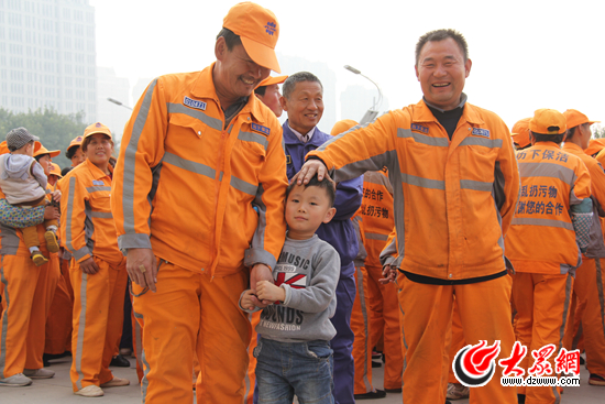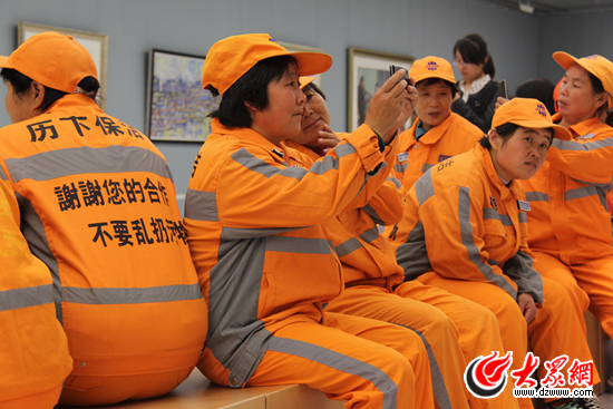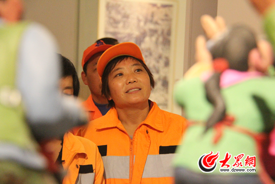 下午2:30,這群特殊的觀眾就早早列隊(duì)等候在山東美術(shù)館門(mén)前,他們當(dāng)中大部分是來(lái)自基層環(huán)衛(wèi)所的環(huán)衛(wèi)工人,在志愿者的引領(lǐng)下,大家有秩序地進(jìn)館參觀。