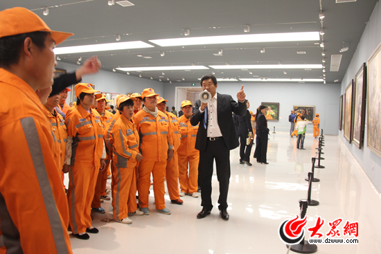 在美術(shù)館一樓大廳,山東省美術(shù)館館長(zhǎng)徐青峰簡(jiǎn)單介紹了美術(shù)館新館情況。為了讓這些“城市美容師”更好地領(lǐng)略參展美術(shù)作品的魅力,徐青峰客串當(dāng)起了“講解員”。