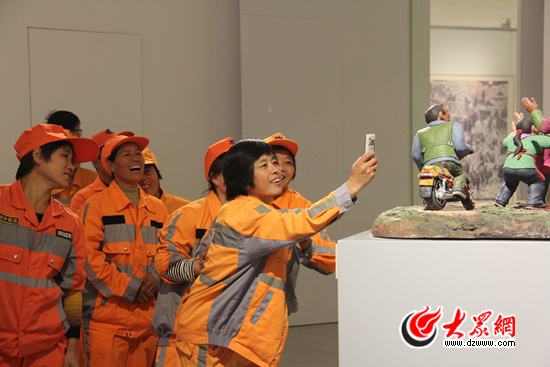 “以前光在電視上看展覽,今天我們也親眼看到了,原來(lái)怕看不懂,這個(gè)講解員講的很有意思,我們都能聽(tīng)懂。”來(lái)自解放路環(huán)衛(wèi)所的環(huán)衛(wèi)工人張俊敏笑著說(shuō),得知“講解員”是美術(shù)館的館長(zhǎng)后,張俊敏有些意外:“難怪講這么好!”