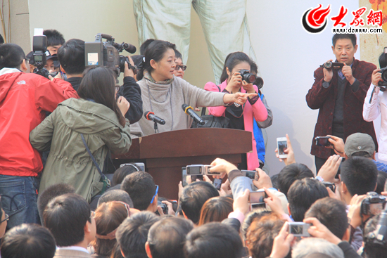 今天上午,倪萍“家在山東”繪畫作品展在山東省美術(shù)館拉開大幕。影迷、畫迷、媒體記者、湊熱鬧的群眾把舞臺團團圍住,只為一睹倪萍真身。倪萍也是大打親情牌,“來到老家就是親切,都沒外人!”