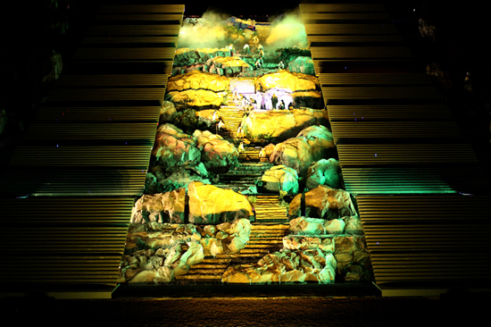 《中華泰山·封禪大典》以泰山山水為背景,結合現代燈光效果,美輪美奐