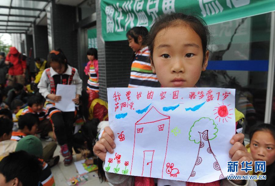 當(dāng)日,香港奧德曼青少年成長中心在蘆山縣城舉行了名為“我們未來的家園”兒童繪畫活動,50多名災(zāi)區(qū)少年兒童紛紛通過手中畫筆,描繪了災(zāi)后自己心目中的家園。據(jù)了解,該機構(gòu)是第一支到達災(zāi)區(qū)的心靈救助隊,將利用其專業(yè)青少年戶外活動和心理輔導(dǎo)師資,在災(zāi)區(qū)各地陸續(xù)開展一系列特殊兒童心理干預(yù)工作,及時撫慰、治療災(zāi)區(qū)兒童心靈上的創(chuàng)傷。新華社記者李紫恒攝