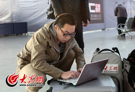 大眾網(wǎng)特派記者盛堃在登機(jī)前,抓緊寫(xiě)一條快訊