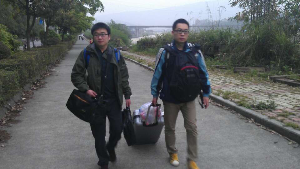 大眾網特派記者精簡行裝,攜帶了可以自足的水、食物,徒步向蘆山進發。(特派記者 尹海洋 攝)