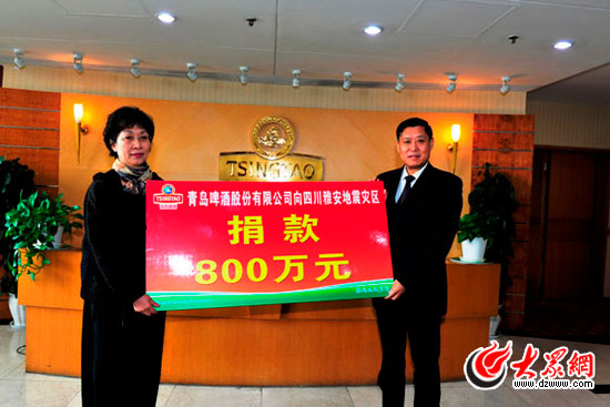 眾志成城 青島啤酒向雅安震區捐款800萬