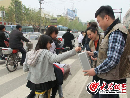 大眾網(wǎng)棗莊4月23日訊(記者 呂斌 實(shí)習(xí)記者 張凱麗)四川不哭,雅安挺住!23日上午,由大眾網(wǎng)棗莊站發(fā)起的“祈福雅安 萬(wàn)名網(wǎng)友簽名募捐”活動(dòng)正式啟動(dòng)。活動(dòng)第一站我們選擇了棗莊三中東校的正對(duì)面,11點(diǎn)30分,四川不哭,雅安挺住的愛(ài)心橫幅準(zhǔn)時(shí)拉起來(lái),陸續(xù)走出校門的學(xué)生聚攏過(guò)來(lái),簽下自己的名字,拿出自己的零用錢,一時(shí)間,這個(gè)小小的活動(dòng),吸引了所有路過(guò)車輛和行人的眼球。這些代表樂(lè)善好施的棗莊人深情厚誼的善款,將全部匯入大眾網(wǎng)總部愛(ài)心捐助賬戶,專項(xiàng)用于四川雅安抗震救災(zāi)。活動(dòng)還將在棗莊學(xué)院、棗莊15中、光明廣場(chǎng)等地繼續(xù)進(jìn)行。