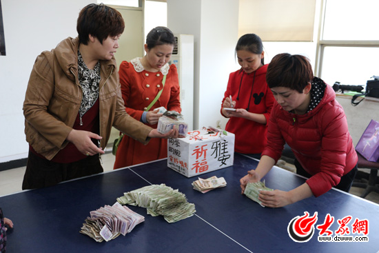 1角、1元、5元……在大眾網編輯部的辦公區,2位老師和3位家長足足數了半個小時,終于把1500余枚硬幣、600余張紙幣共計3524.1元善款,鄭重地交到了大眾網編委、互動評論部主任邢玉軍手中。