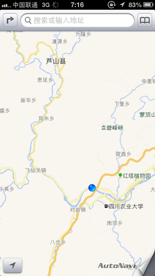 從雅安通往蘆山的地圖