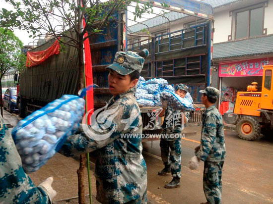 23日下午1點,大蒜穿過幾十公里山路到達蘆山縣受震嚴重的龍門鄉(xiāng)。車一到龍門鄉(xiāng),志愿者和12名空軍西昌司機訓練隊的戰(zhàn)士就圍過來幫忙卸蒜,當?shù)厝罕娂娂姟八杰嚬谩保凑涨帻埓宕逯鯘杀陌才牛阉夥峙偷?000多名震區(qū)村民手里。截至下午3時,2000包大蒜全部分發(fā)到群眾手中。