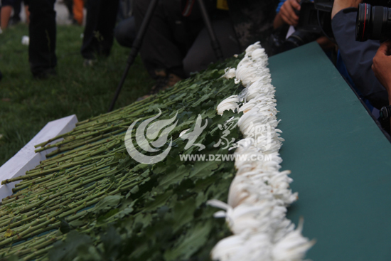 震區群眾為遇難同胞獻花。大眾網特派記者 攝