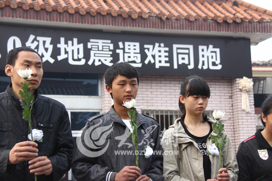 大眾網蘆山4月27日訊特派記者 李兆輝 盛堃 尹海洋)4月27日8:02,四川省深切哀悼“4·20”蘆山地震同胞。在蘆山縣政府大院內,數百人集中悼念并向逝者獻花。災難突如其來,生命凋零,家園損毀,100多個失去親人的家庭陷入沉痛當中。然而生活還要繼續,在紀念逝者的同時,即將參加中考的學生、10多天后將到來的新生命都讓雅安人看到了未來生活的希望!