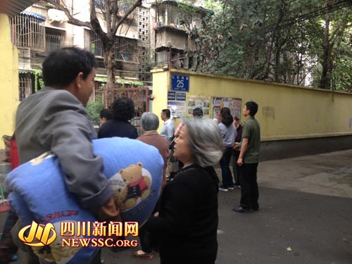 8點48分報道:【成都有市民拎上大包東西 準備外出避難】不少市民跑到樓下等待,打電話,哭泣,紛紛議論。有不少人穿著睡衣,還有一男子裸著上身。有市民甚至已經拎上了一大包東西,準備外出避難,現在已經有部分市民成群結隊往街面上走。