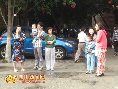 成都綿陽南充等地震感強烈,市民紛紛被驚醒,跑上街道。移動電話出現暫時不通情況。