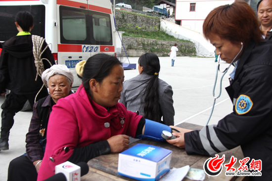 急救人員趕到蜂桶寨后,緊急為受災群眾檢查身體。大眾網特派記者 攝