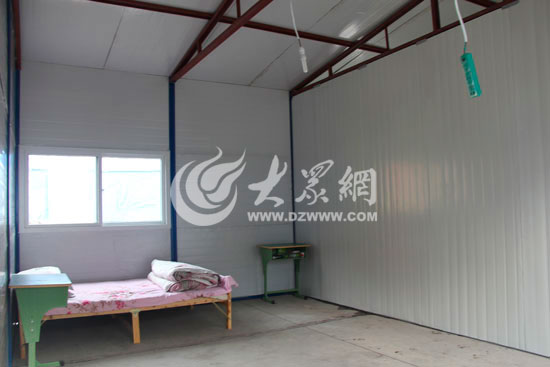 大眾網(wǎng)特派記者走進(jìn)活動板房看到,每間板房的面積大約為38平方米,可容納10個人臨時居住,搭建好的12間活動板房可容納120人居住,總價值達(dá)15萬元。劉志剛說,等地震過后,這些板房還可以用來做學(xué)校的臨時教室,用處還有很多。