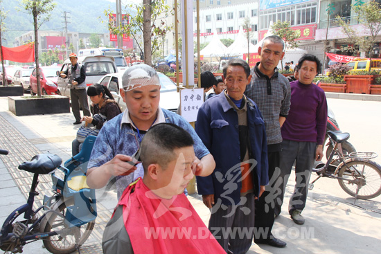 大眾網蘆山4月26日訊(特派記者 李兆輝 盛堃 尹海洋)“我是小人物,但蘆山人也需要我。”26日上午,大眾網特派記者在蘆山縣城大街上遇到了一位理發師。他的頭部因地震受傷,卻特意從龍門鄉趕到縣城免費為震區群眾理發。