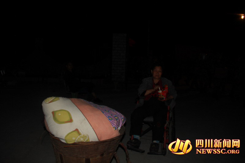 由于匆忙,周成華從倒塌的老屋下僅僅拉出了一條被子。老人將輩子裝進一個大背簍,并為王友珍泡了一桶方便面。一個大背簍、一床被子,這是兩位老人目前唯一的財產。