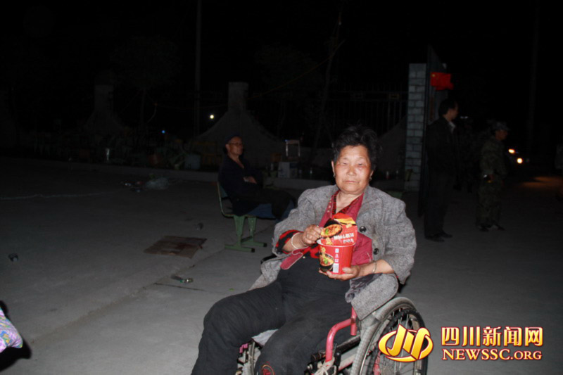 他們敲開倒塌廢墟的木頭。直到23點老人王友珍才被救出。所幸的是老人受傷并不嚴重,只有腳不被壓時受了點輕傷,不能行走。祝明將王友珍趕緊背到龍門鄉救災中心,并為她推來了一輛輪椅。