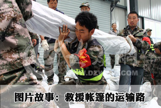 通往蘆山縣的唯一一條公路S210,從來沒有像最近6天這么忙碌擁堵過。來自全國各地的卡車滿載著救災物資,排著長長的隊伍,呼嘯著朝蘆山、寶興、天全等震區進發。源源不斷的物資究竟如何存儲、分發?經過幾道手續才能發放到受災群眾手中?帶著這些問題,大眾網特派記者從今天早上開始,一路跟蹤四車帳篷從裝運到分發,全程記錄救災物資的中轉。