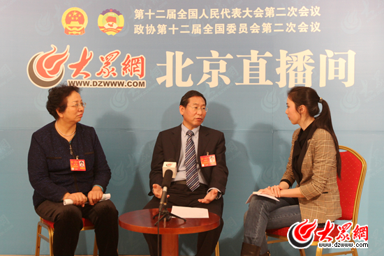 全國人大代表、聊城職業(yè)技術(shù)學院副院長孫菁,全國人大代表、山東中醫(yī)藥大學附屬眼科醫(yī)院(施爾明眼科醫(yī)院)院長畢宏生做客大眾網(wǎng)北京直播間。特派記者 馬俊驥 攝