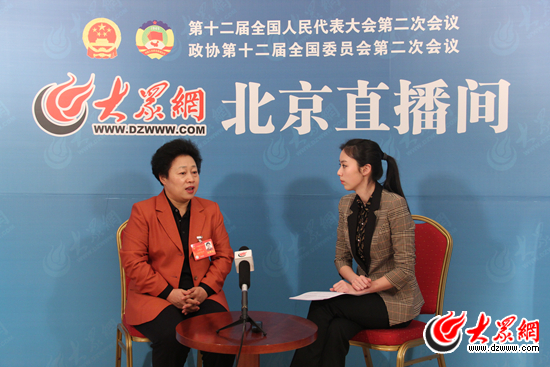 全國人大代表、濟南陽光大姐服務有限責任公司董事長卓長立做客大眾網北京直播間就“就業和收入”接受訪談。特派記者 馬俊驥 攝