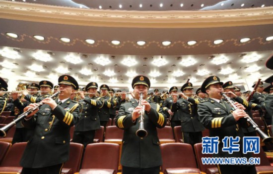 3月5日,第十二屆全國人民代表大會第二次會議在北京人民大會堂開幕。這是軍樂團奏國歌。 新華社記者 王曄攝