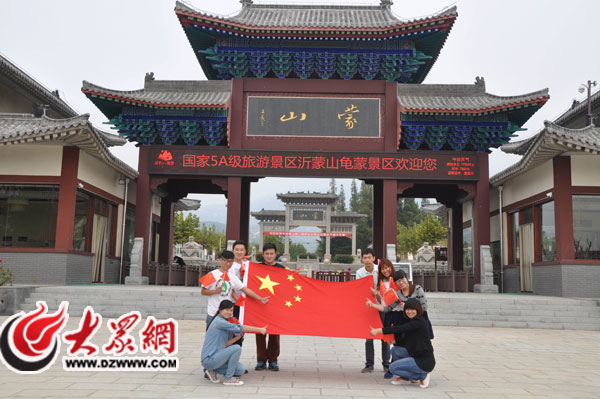 蒙山青年志愿者在龜蒙景區與國旗合影,為中國點贊。