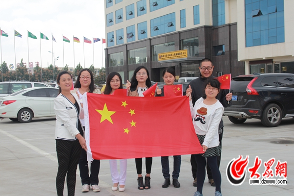 9月29日,臨沂跨國采購中心卡塔爾龍城辦事處工作人員與國旗合影,為中國點贊。