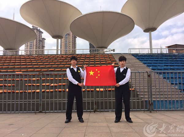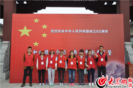 大眾網臨沂記者站工作人員和國旗合影,為中國點贊。