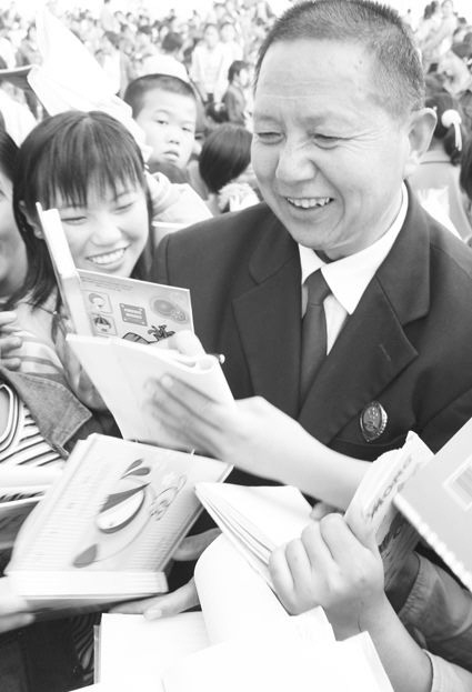 白云作報告后給學生簽名留言。