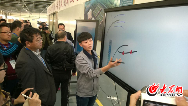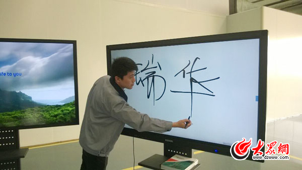 27日下午,聚焦“一圈一帶”第十屆中國網(wǎng)絡(luò)媒體山東行采訪團(tuán)來到山東聊城茌平瑞華電子科技有限公司采訪。瑞華電子自主開發(fā)了電磁觸摸系統(tǒng),跟以往的紅外觸摸相比,可以根據(jù)下筆輕重緩急完美還原原筆跡,在液晶屏上書寫?yīng)q如在黑板上板書。 記者 馬俊驥 攝