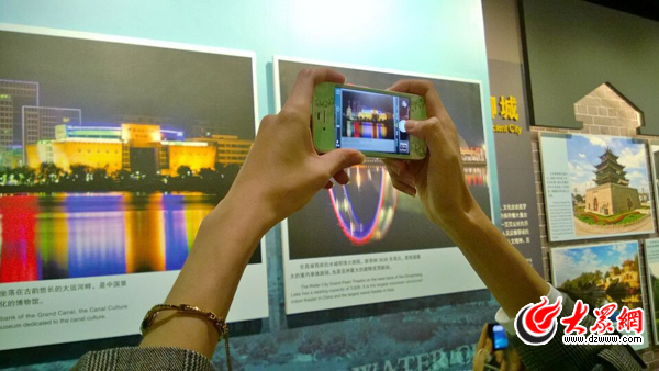 27日,“聚焦‘一圈一帶’——第十屆中國網絡媒體山東行”采訪團來到位于聊城的中國運河文化博物館采訪。聊城秀美的水城風光,豐厚的歷史文化底蘊吸引著各位記者。 記者 馬俊驥 攝